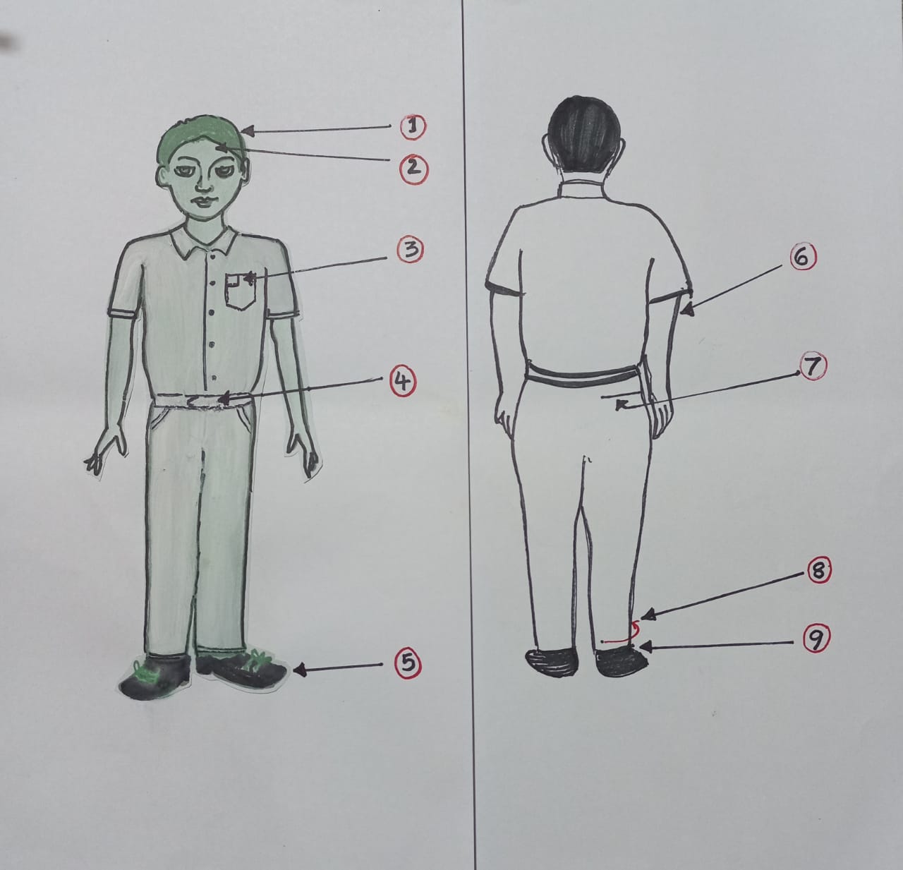 - The color of the shoes should be black and different styles of shoes should not be worn.